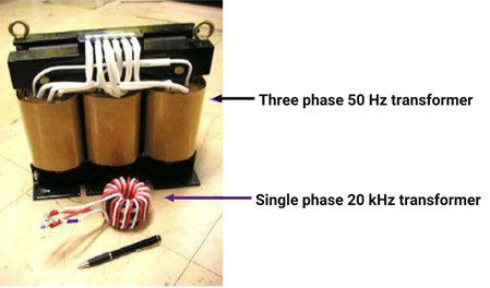 ► 隔离级(高频DC/DC):通过高频变压器实现电气隔离和电压变换;利用磁性材料(如铁氧体和非晶合金纳米晶),高频变压器在保持高热稳定性和功率密度的同时,最小化磁芯损耗,且相较于传统变压器,体积和重量大幅降低。