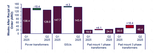 北美仍面临严重的变压器紧缺问题;SST性能优势明显,叠加交付周期有望缩短,或成为优选解决方案。800V HVDC供电系统框架目前主要包括三条技术路线,工频变压器路线、移相变压器路线和SST路线。前两种路线基于传统变压器设计,而当前北美市场的传统变压器仍面临较为严重的供需失衡,采购价格高、交期长等问题影响了当地数据中心的投资建设。根据Wood Mackenzie估算,自2019年以来变压器单位成本上涨77%以上,叠加加征关税影响,价格将进一步上涨;交期方面,以三相配电变压器为例,2Q25长达约46周,环比提升且维持高位水平。相较而言,SST系统采用高效率的功率半导体器件取代传统变压器进行调压和整流,具备体积小、重量轻、效率高等特点,可实现模块化快速部署,且其成本仍具有较大的下降潜力。我们看好SST方案更加适配北美快速布局AIDC的建设需求,有望成为下一代AIDC供电方式的优选方案。