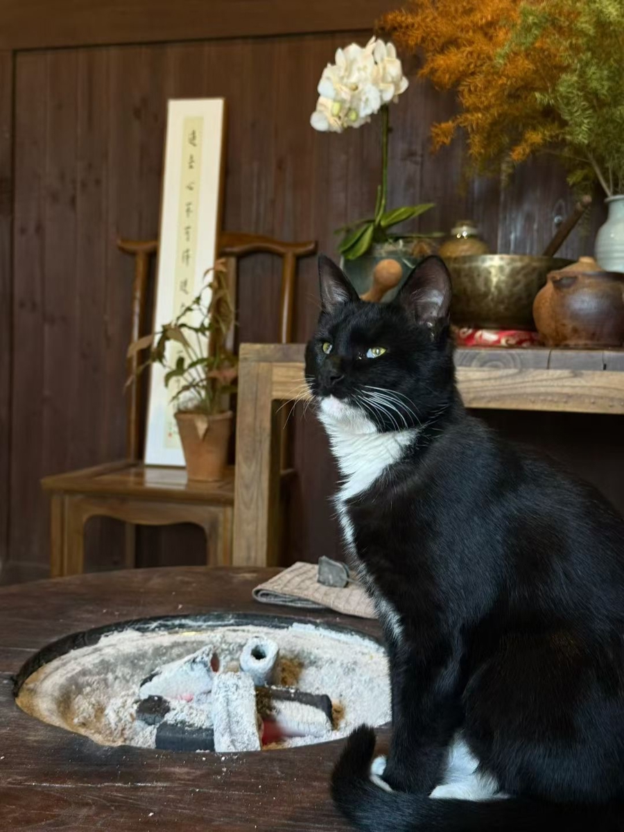 提到最近热播的《太平年》为浙江文旅带来的泼天流量,虽未有时间追剧,但她也明显感觉到由吴越钱氏所兴建的灵峰寺确实多了不少游客。“景区火了,茶舍也更忙了”,作为主理人,打烊后还要自己拍视频、剪片子,发小红书和抖音,运维自家账号。不久前,一部苏东坡题材的微短剧看中茶舍周边清幽景色,前来借景拍摄,待看到成片她一时恍惚:“不知道是谁穿越了。”这也让她更愿意用自己的镜头,记录下灵峰山的四时美景和真实日常,经常在茶舍账号里出镜的小猫“墨宝”也已有了不少粉丝,“来过的客人也会分享他们拍到的美图给我,大家都很珍惜这份来自山野的疗愈感。”