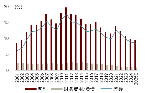 固定资产投资增速下降背后因素由“缺资金”更多转向“缺项目”。2025年1-8月固定资产投资资金来源同比-0.1%,较2024年的-2.3%改善,与固定资产投资增速之间的差异也明显缩窄,而1-8月本年新开工项目计划总投资额同比-3.0%,不但低于2024年的-2.9%,而且低于资金来源和固定资产投资增速。在今年财政前置发力的背景下,固定资产投资“缺资金”的问题得到一定缓解,而更多转向“缺项目”因素主导。“十四五”规划进入收官阶段,新开工项目回落也符合历史规律。当然,中长期来看,企业是否进行投资归根结底取决于投资项目是否能够盈利。而近年来虽然融资成本不断下降,但是投资收益率降幅更为显著,影响了企业投资意愿。