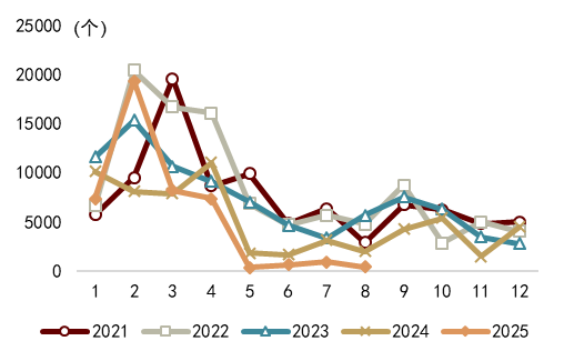 这也与Mysteel根据公开资料不完全统计的全国新开工项目数量和投资金额走势一致,2025年5月以来,两者皆环比回落且呈现低于历史均值的状态。