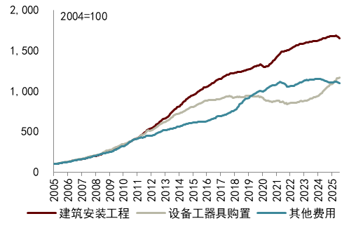 建筑安装工程是近期固定资产投资增速下滑的主要影响因素。1-8月建筑安装工程、设备工器具购置、其他费用累计分别拉动整体固定资产投资-0.6、2.1、-0.1个百分点,较1-3月分别下降2.7、0.4、0.5个百分点,可见近期固定资产投资增速下滑主要受建筑安装工程影响。而从2024年至今,在大规模设备更新改造政策的支持下,设备工器具购置持续支撑整体固定资产投资。2024、2025年分别有约1500、2000亿元超长期特别国债支持设备更新改造。展望未来,由于今年1880亿元超长期特别国债支持设备更新投资补助资金已经下达完毕[2],我们预计,若没有新增资金支撑,后续设备工器具购置投资的支撑或也将有所下降。