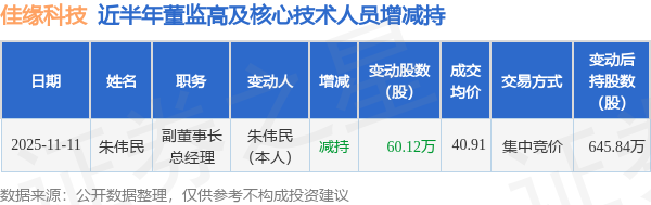佳缘科技近半年内的董监高及核心技术人员增减持详情如下: