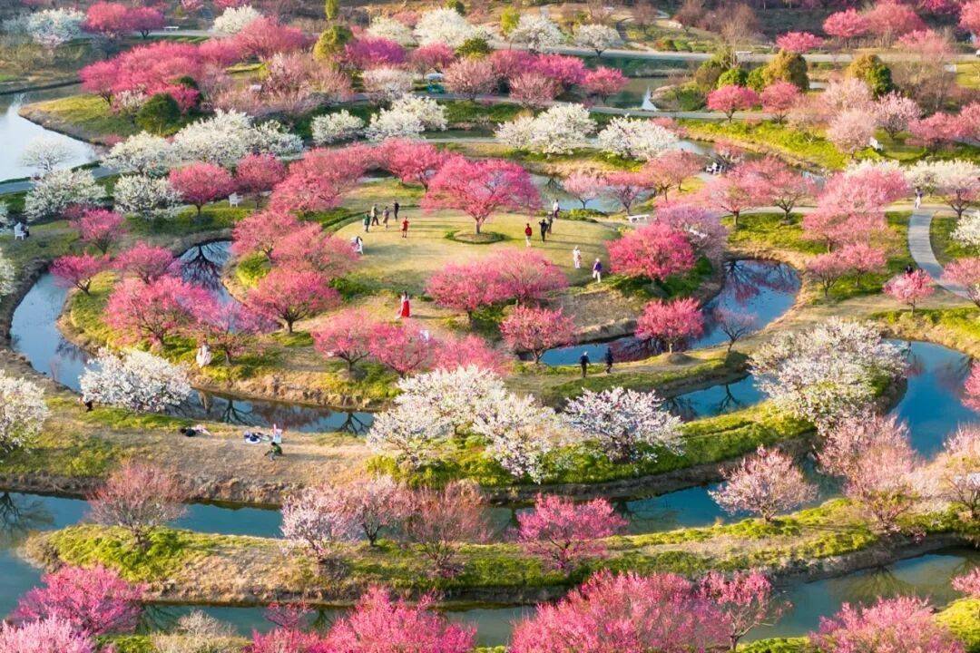 花开海上生态园——上海近郊的“花海秘境”,更是亲子自然美育的生动课堂。这个时节,园内的大片美人梅正肆意绽放,粉色的花朵缀满枝头,是赏景拍照的绝佳“背景板”。而当夜幕降临,特色夜场活动更为惊喜,“梅香夜游光影秀”与“无人机表演”双秀合一的限定盛宴值得一看,让你能真正实现“昼赏繁花、夜观秀影”的双重游玩体验。